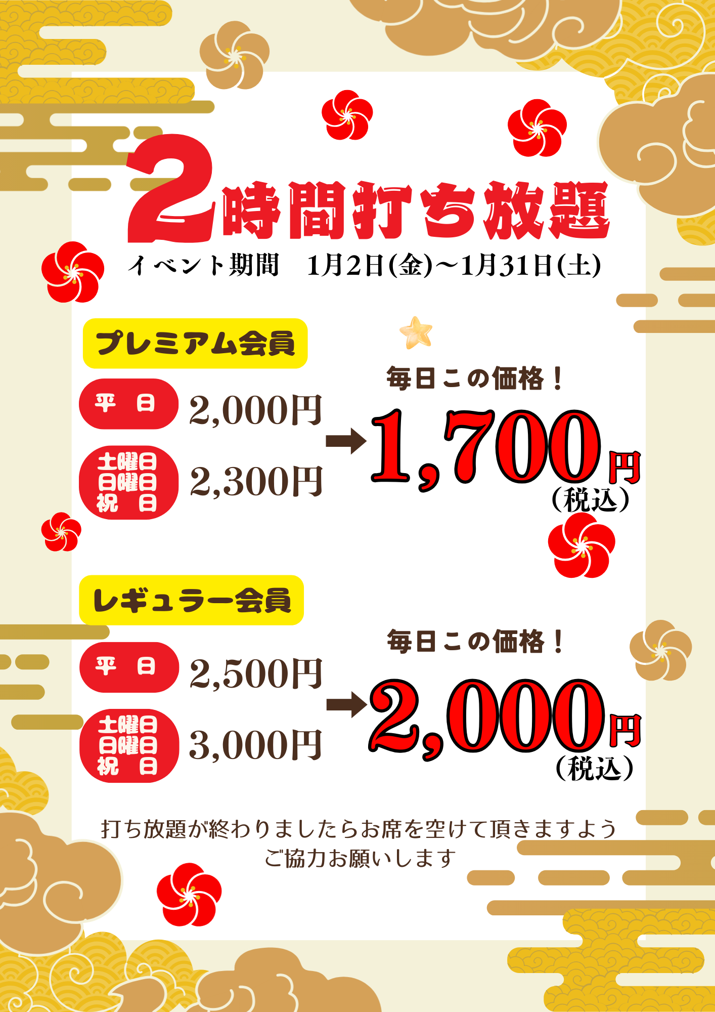 1月31日(土)迄、2時間の打ち放題がさらにオトクになります。